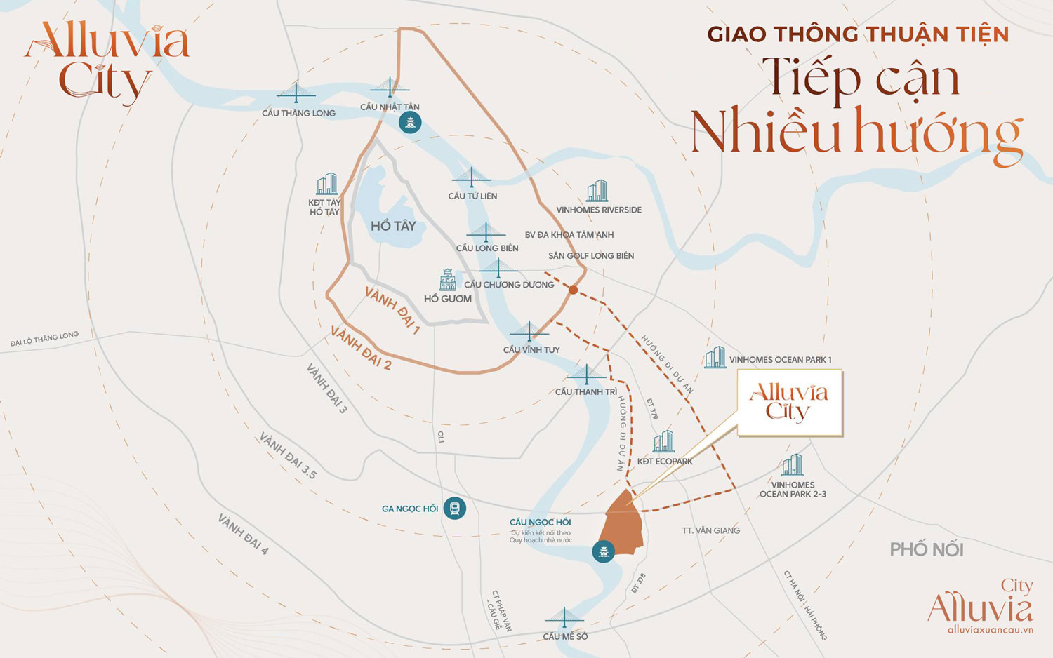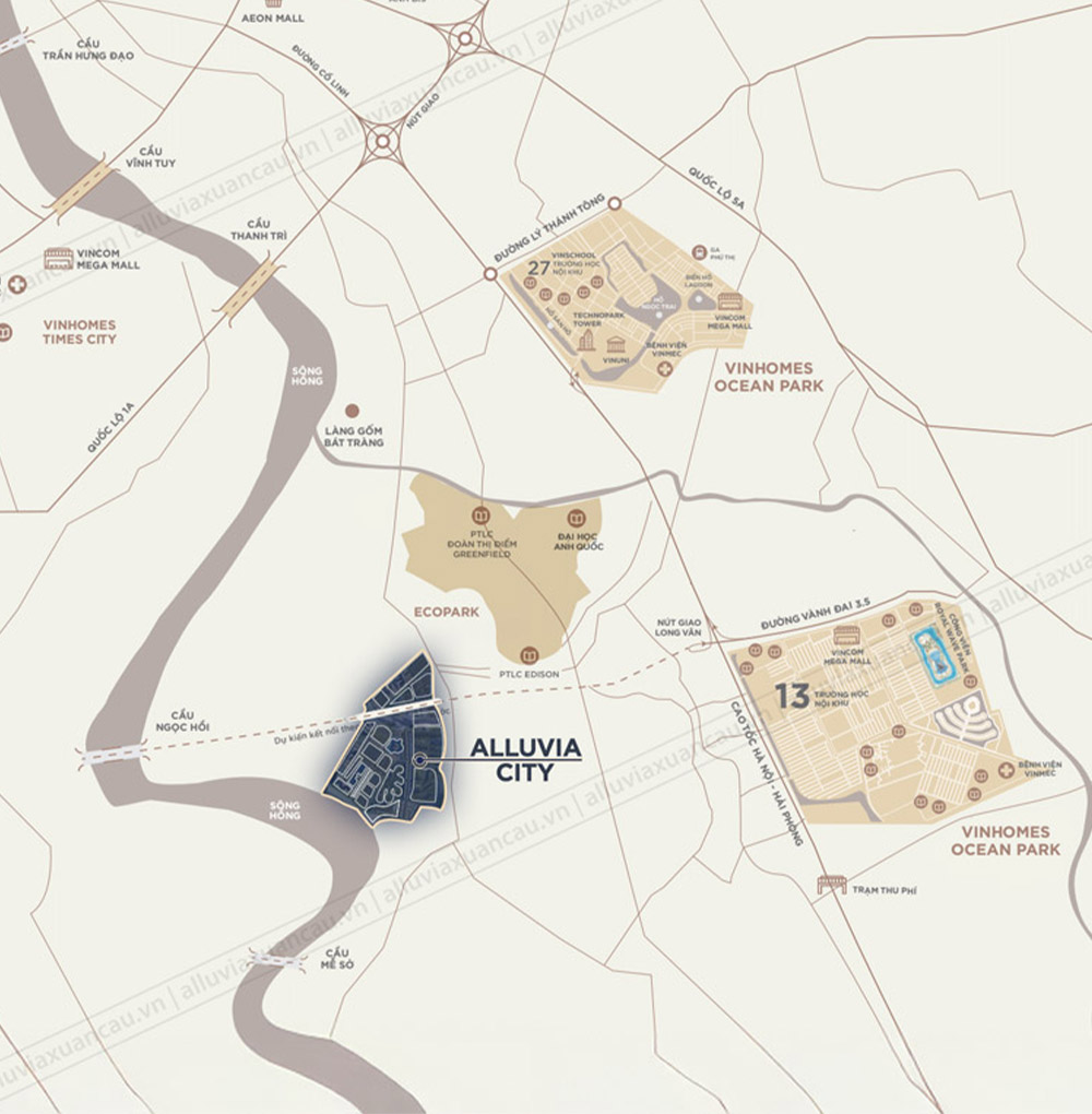 Alluvia Royal được xem là phân khu biệt thự đảo đắt giá bậc nhất tại trung tâm trái tim của đại dự án Alluvia City. Mỗi căn biệt thự nơi đây được kiến tạo tinh tế, hài hòa với cảnh quan sông nước và thảm xanh thiên nhiên, mở ra một không gian sống trong lành, chuẩn mực nghỉ dưỡng. Không chỉ dừng lại ở giá trị an cư riêng tư và đẳng cấp, Alluvia Royal còn khẳng định sức hút đầu tư vượt trội nhờ lợi thế ven sông Hồng cùng khả năng kết nối nhanh chóng tới các trục giao thông huyết mạch của khu vực.